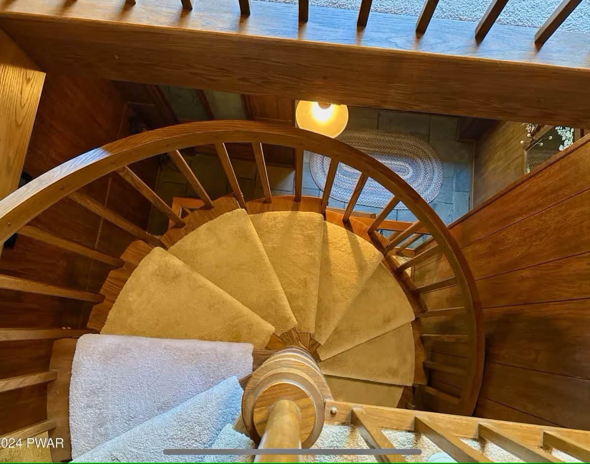 Climb the one-of-a-kind wooden spiral staircase to the second floor, where you’ll find: